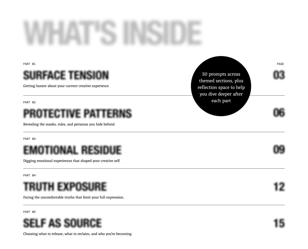 This isn’t therapy. It’s a creative tool to help you get honest with yourself. So you can finally understand what’s really getting in the way.