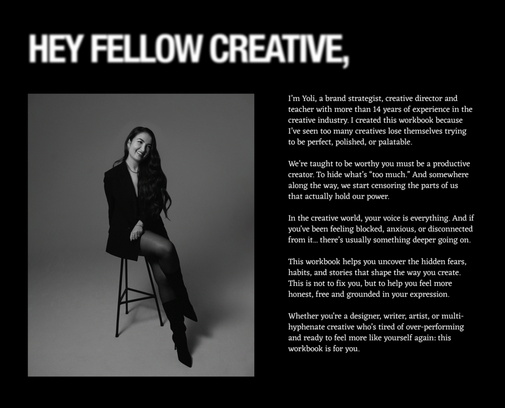 Thank you for being here. My name is Yoli, and I created this workbook after working with hundreds of creatives who kept asking the same thing in different ways: